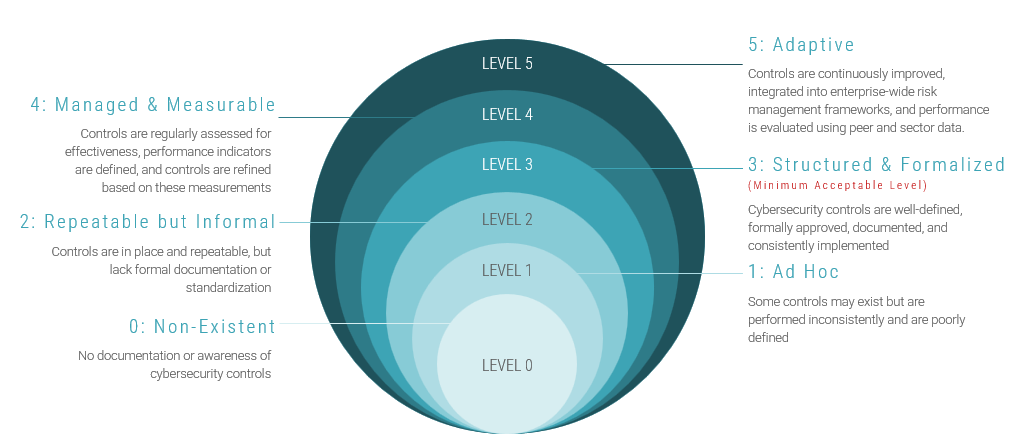 SAMA CSF has identified 6 maturity levels. Member Organizations should at least operate at maturity level 3 or higher.